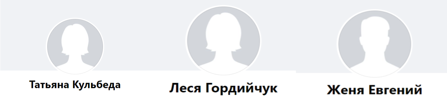 Втім, набагато ширшою та більш скоординованою була інша мережа ботів, котрі негативно оцінювали діяльність та позиції Віктора Медведчука. Ми знайшли сторінки Татьяны КульбедыЛеси Гордийчук та Женя Евгений, що не мали на своїх профілях жодної фотографії, взагалі не взаємодіяли зі своїми Facebook-друзями та ніяк не проявляли активність на власних сторінках: