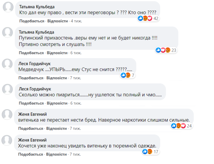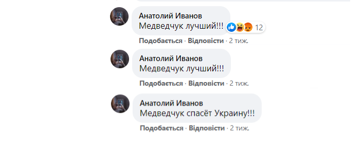 Звичайно, далеко не всі користувачі, які коментували дописи, є ботами. Присутні й реальні особи, які схоже, що щиро підтримували позицію Віктора Медведчука, а також інші коментатори, що мали абсолютно протилежну точку зору.